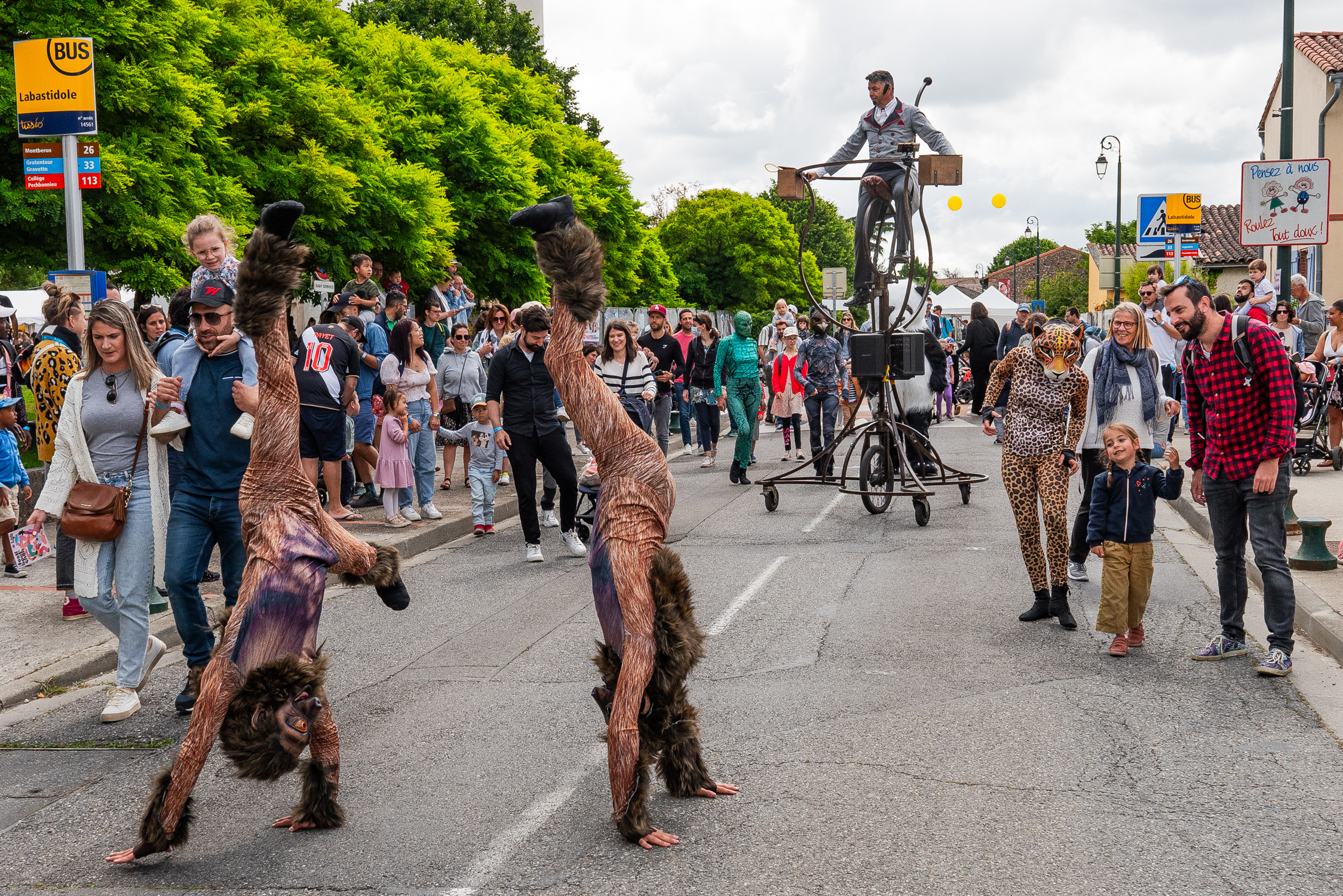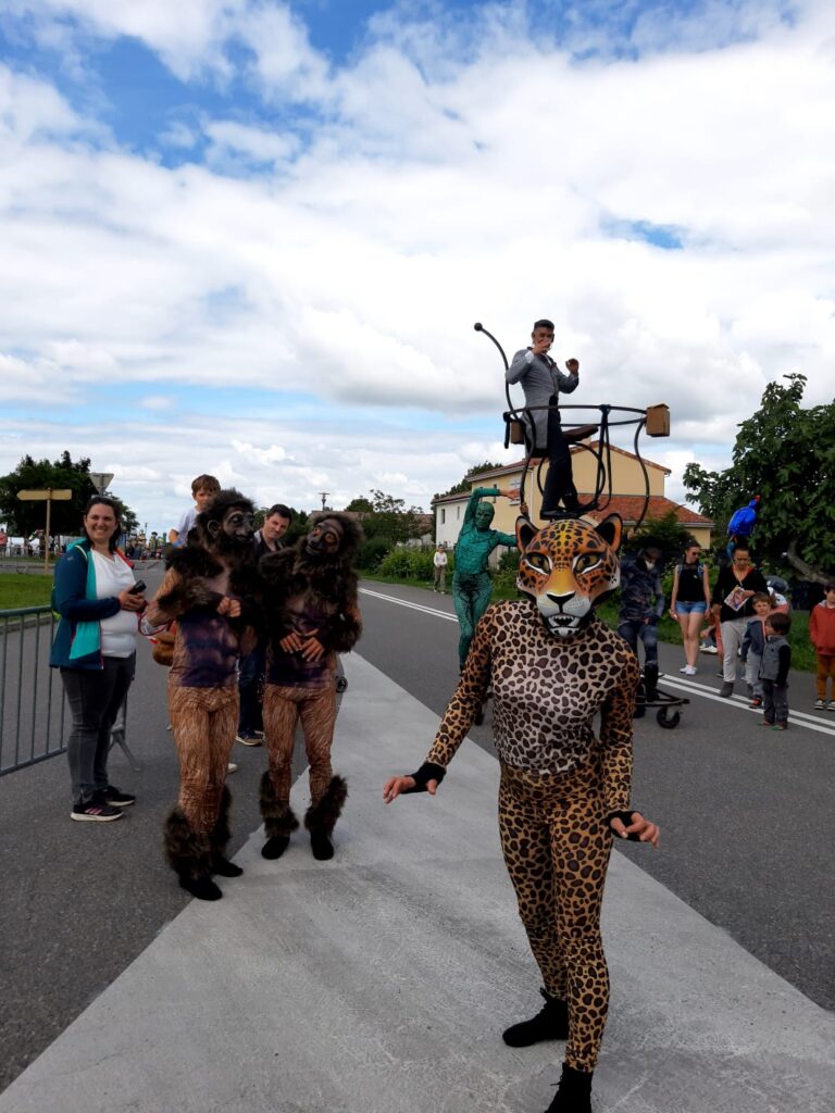 Poil, plumes et écailles seront de la partie pour cette belle ribambelle en liberté. Les voici qui s’approchent autour de leur montreur d’humain•es perché sur son monopluricypède.