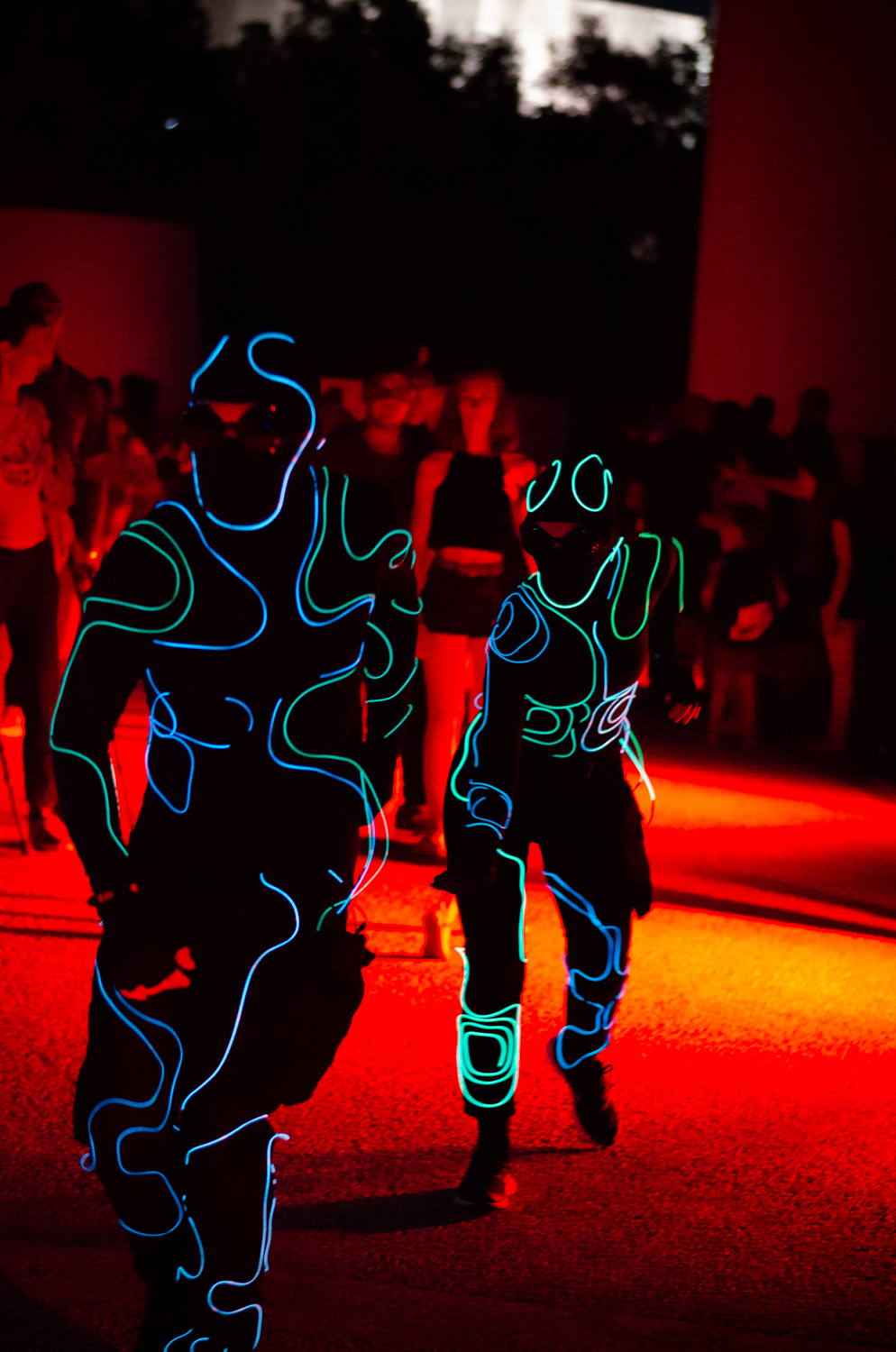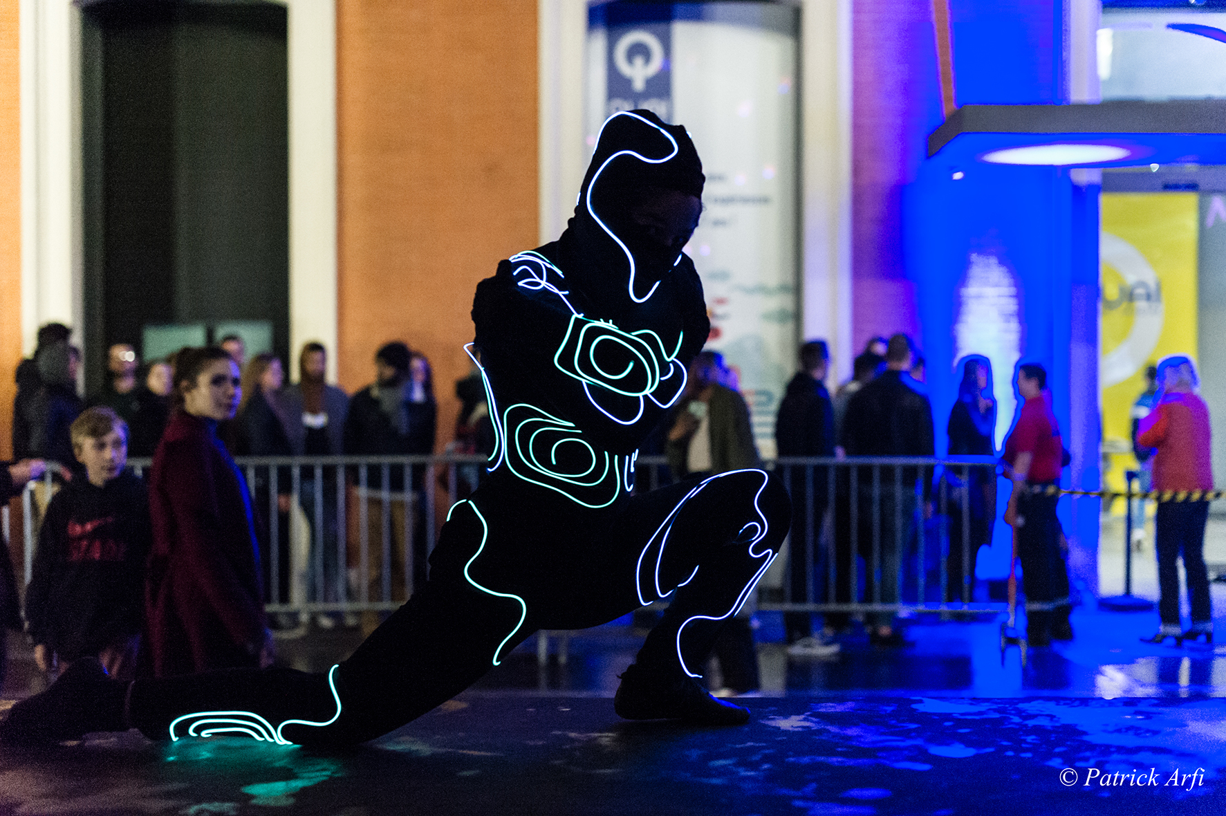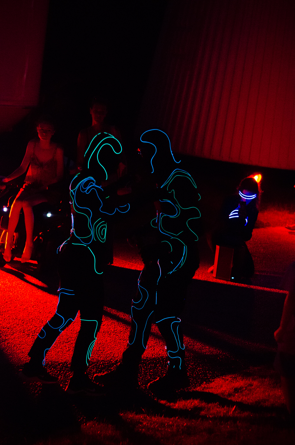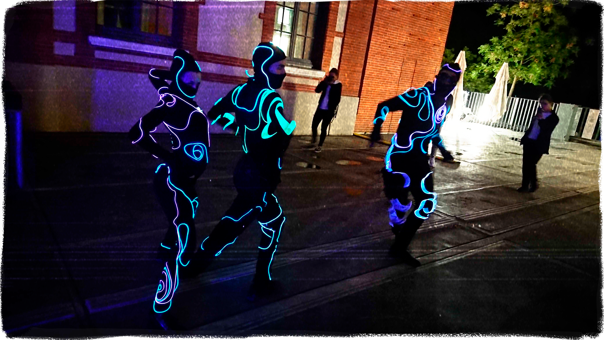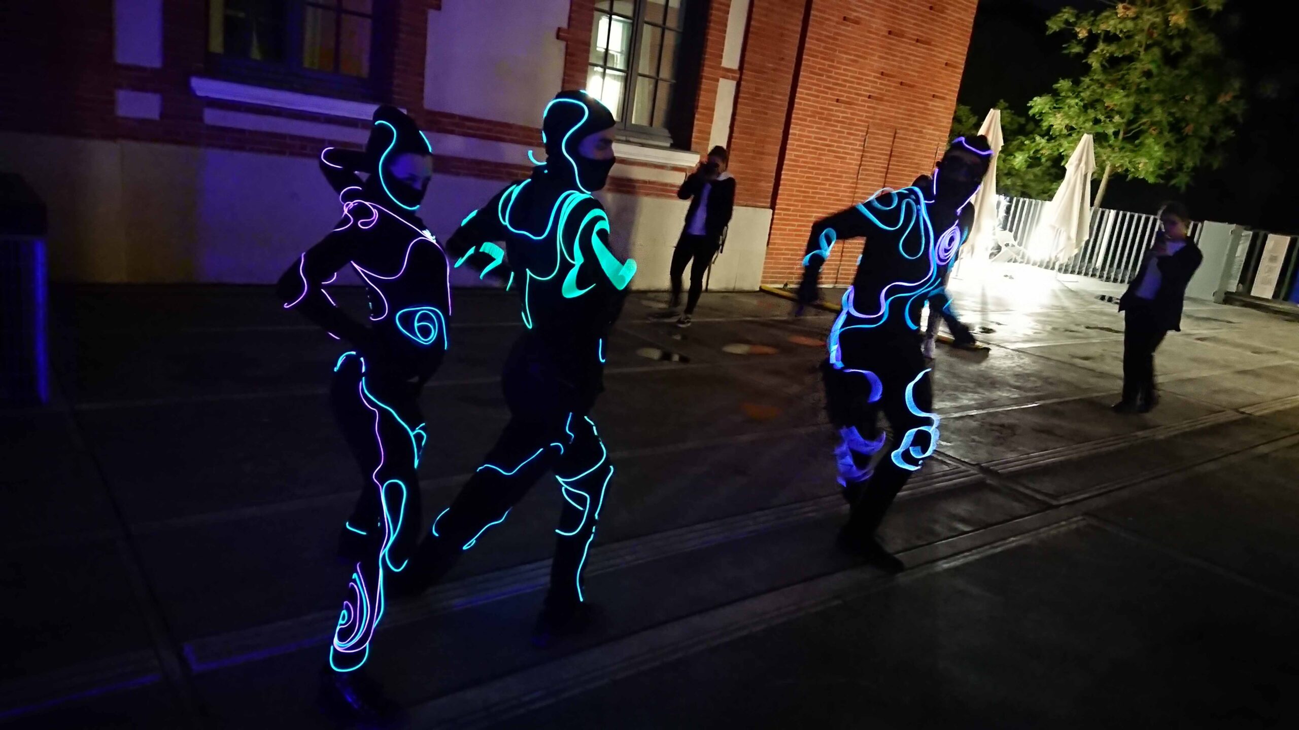 Au contact du public, ces silhouettes de lumière occupent/explorent l’espace, entre chorégraphies et instants de cirque.